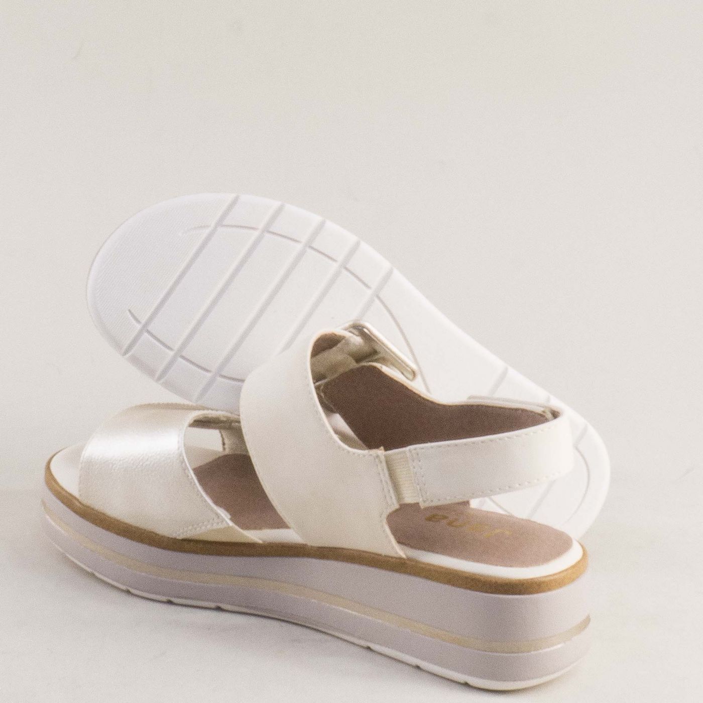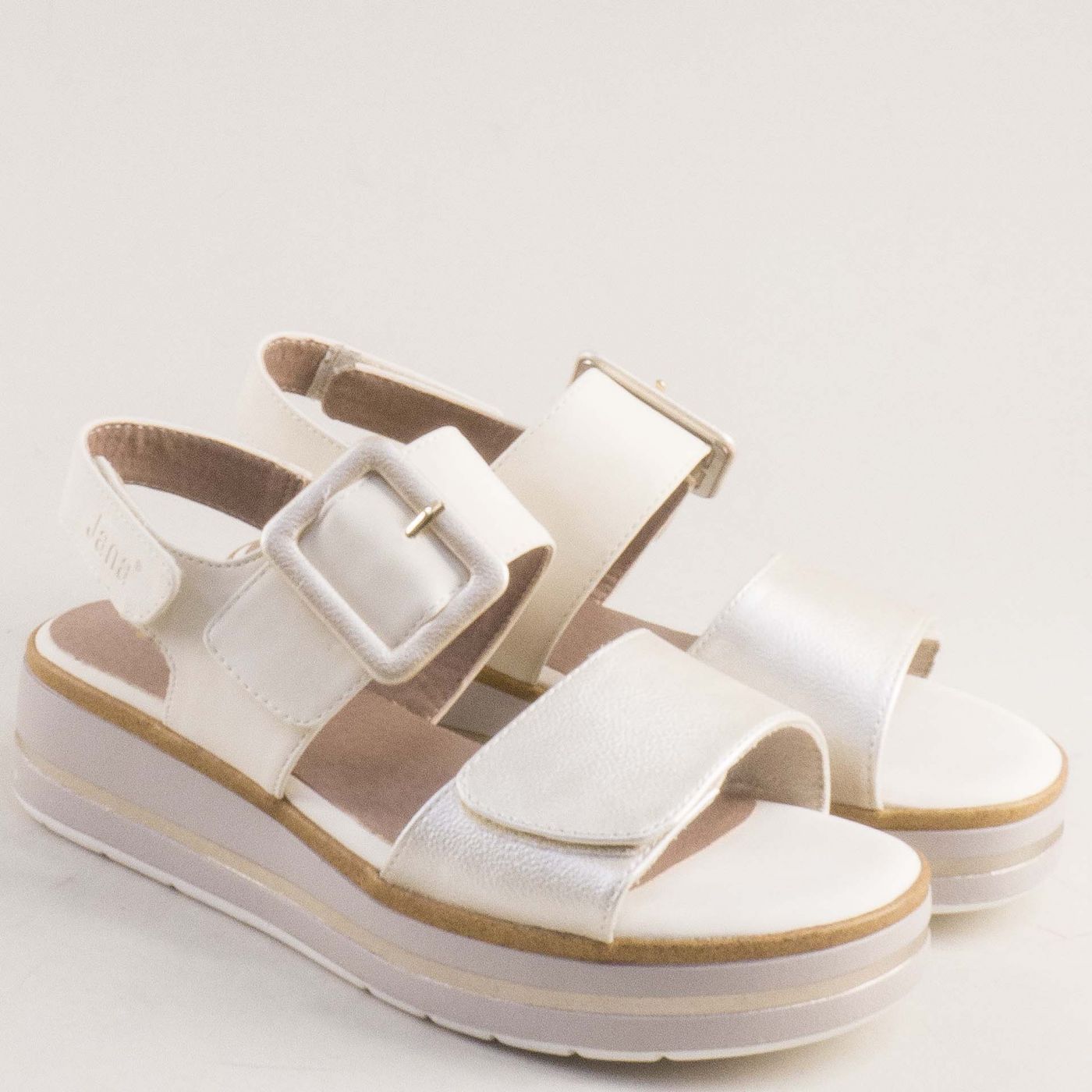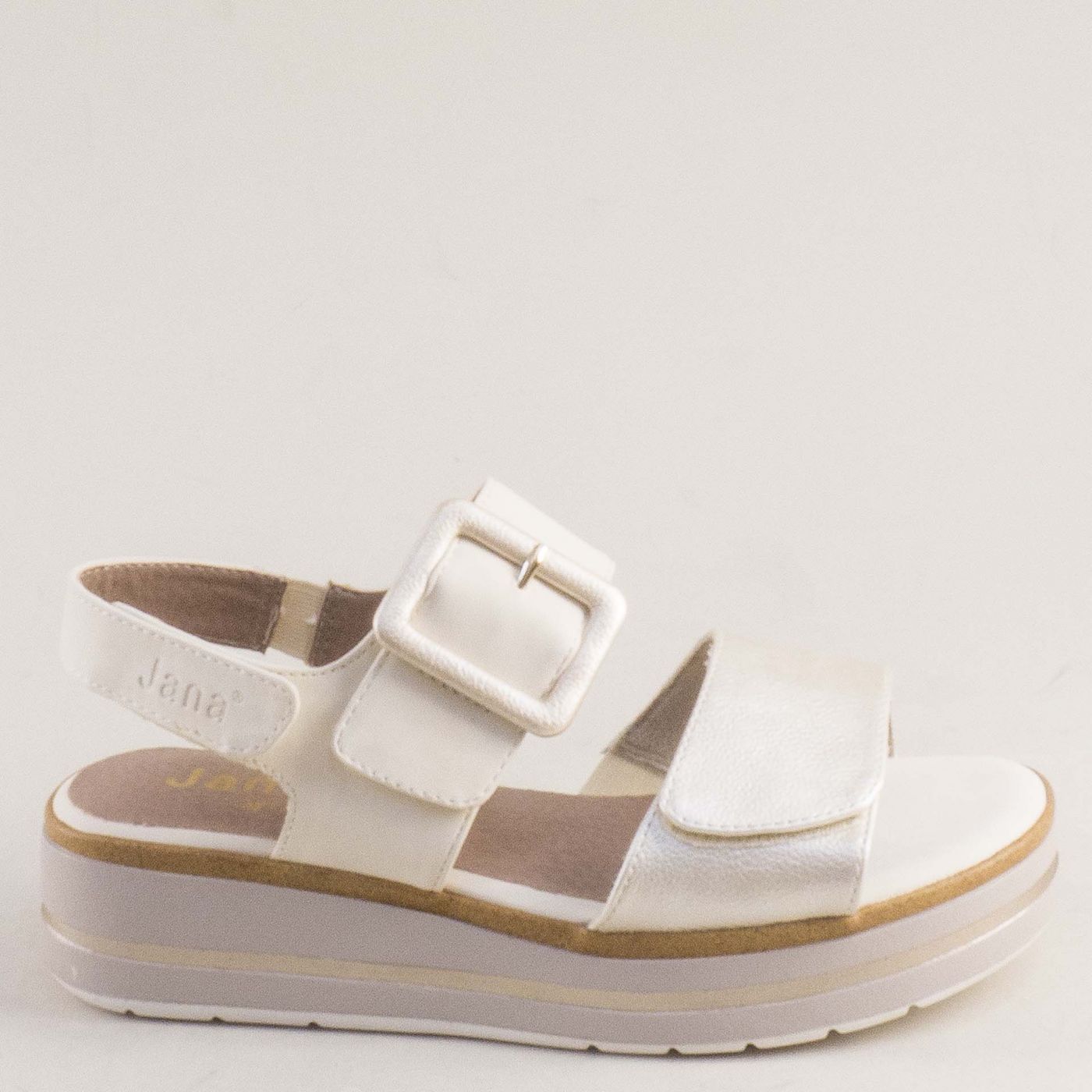 Дамски бежови сандали на платформа с катарама и велкро JANA 8-28266-499